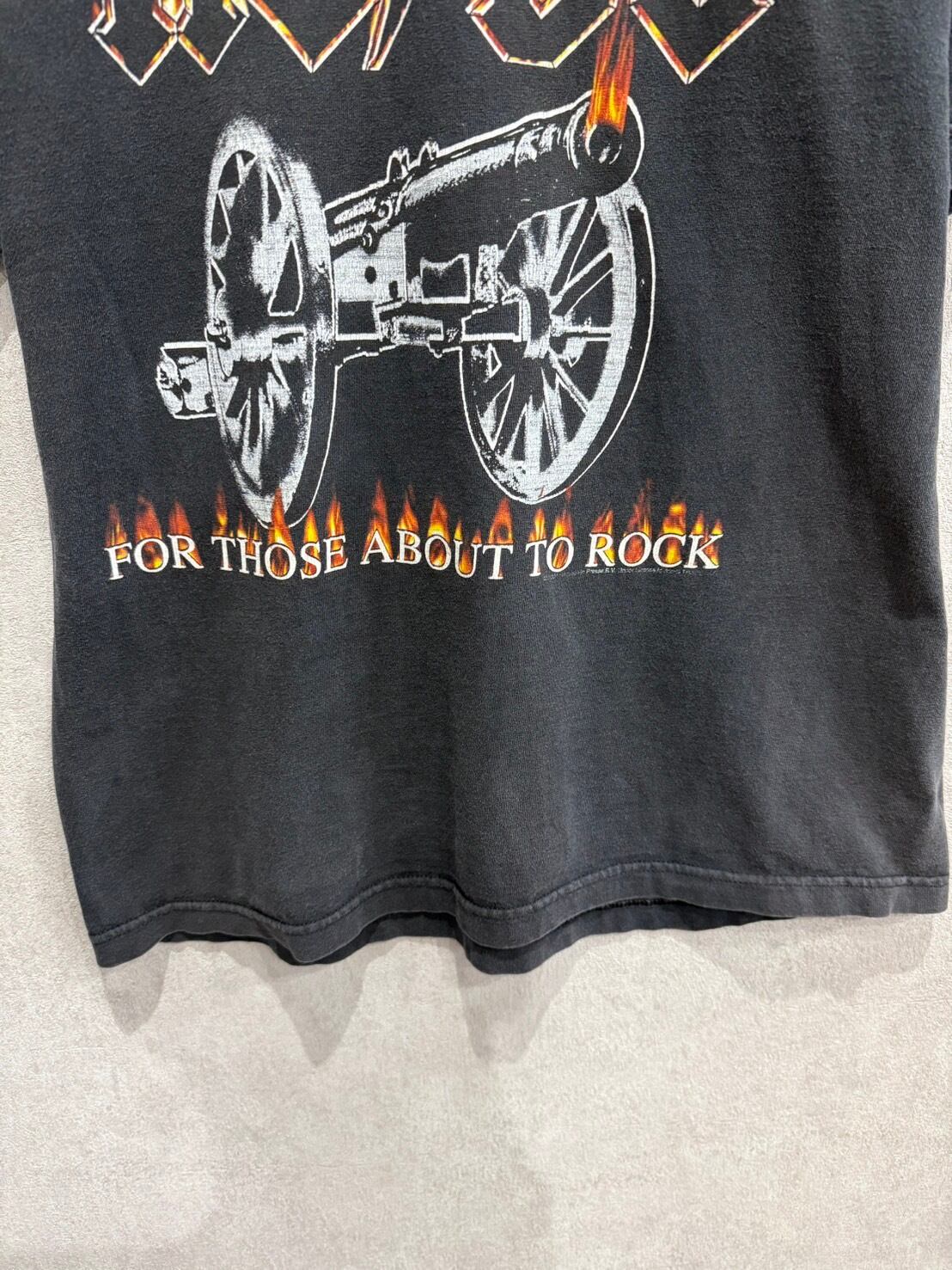 ロック界のレジェンド、AC/DCの名盤「FOR THOSE ABOUT TO ROCK」を大胆にプリントした一枚。