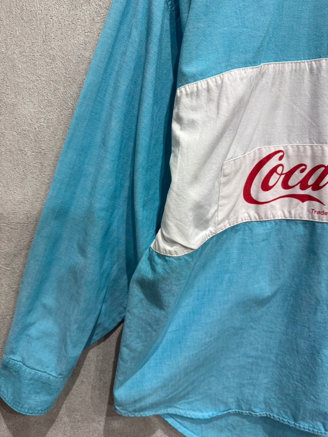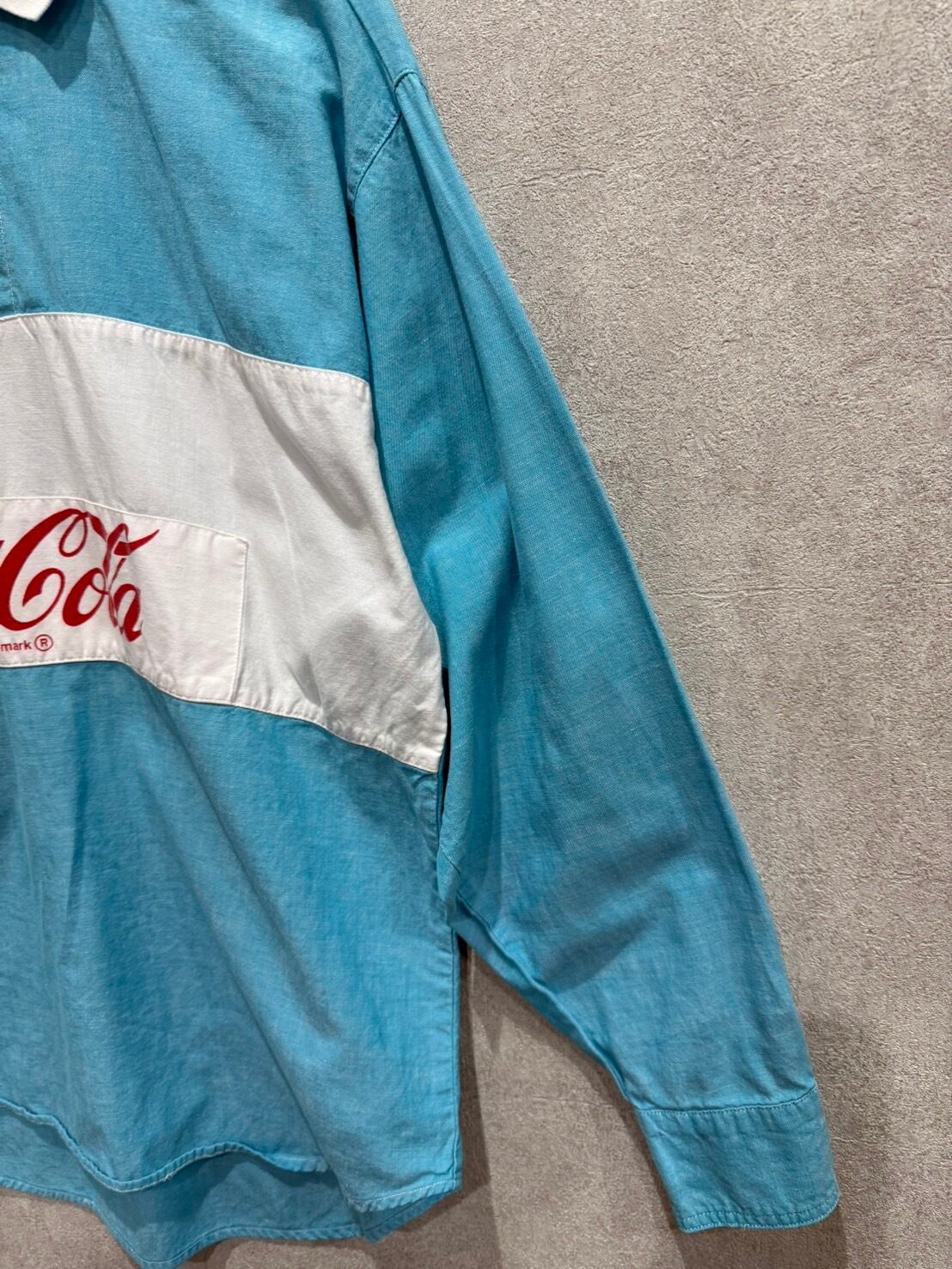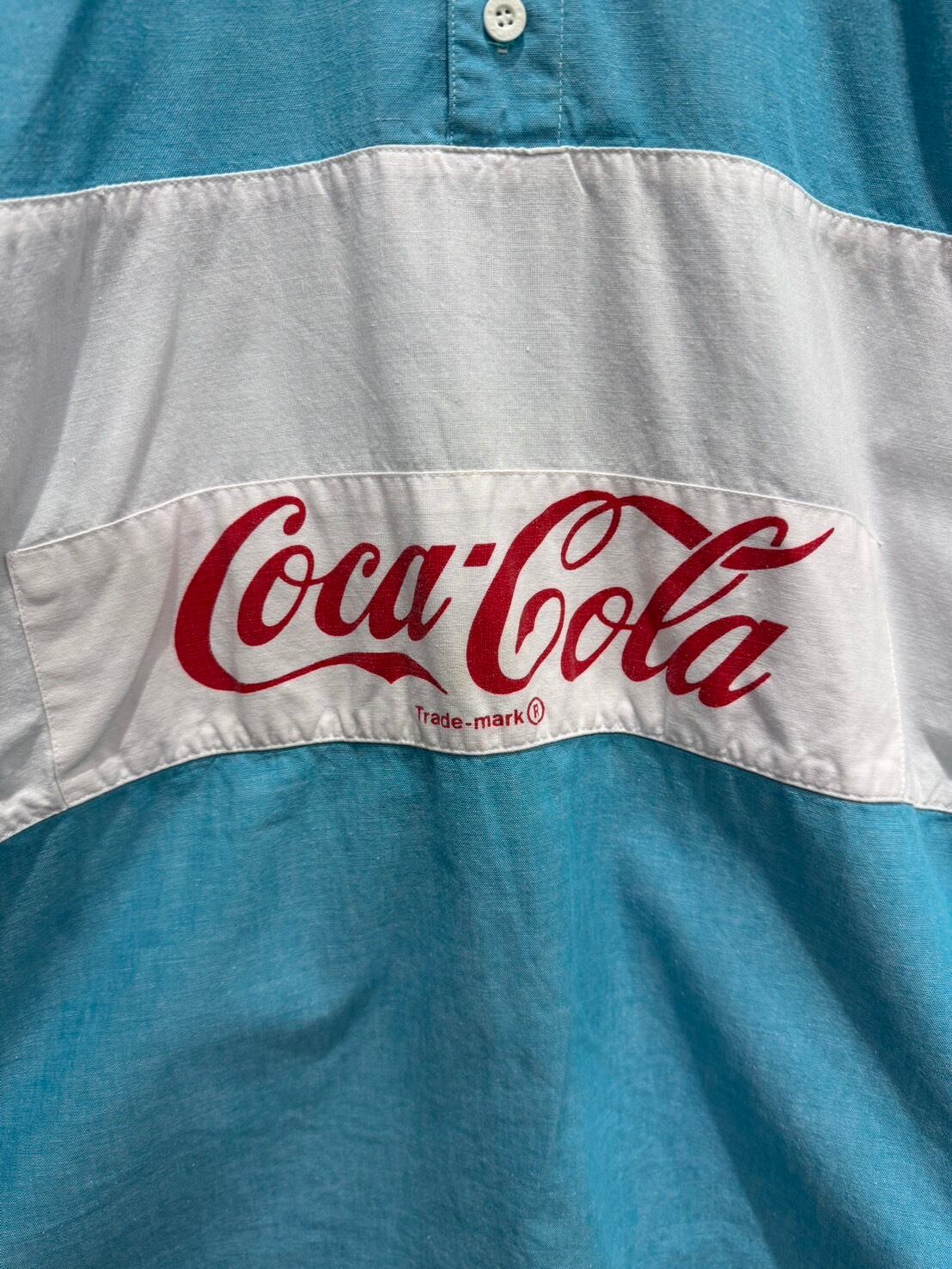 爽やかなブルー×ホワイトの切り替えデザインに、胸元のCoca-Colaロゴが映えるヴィンテージラガーシャツ。