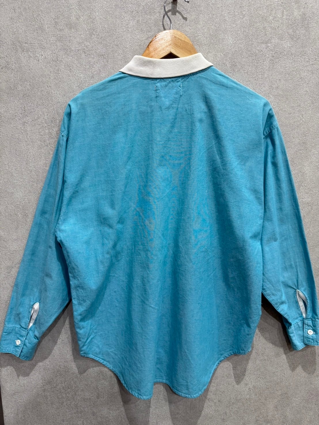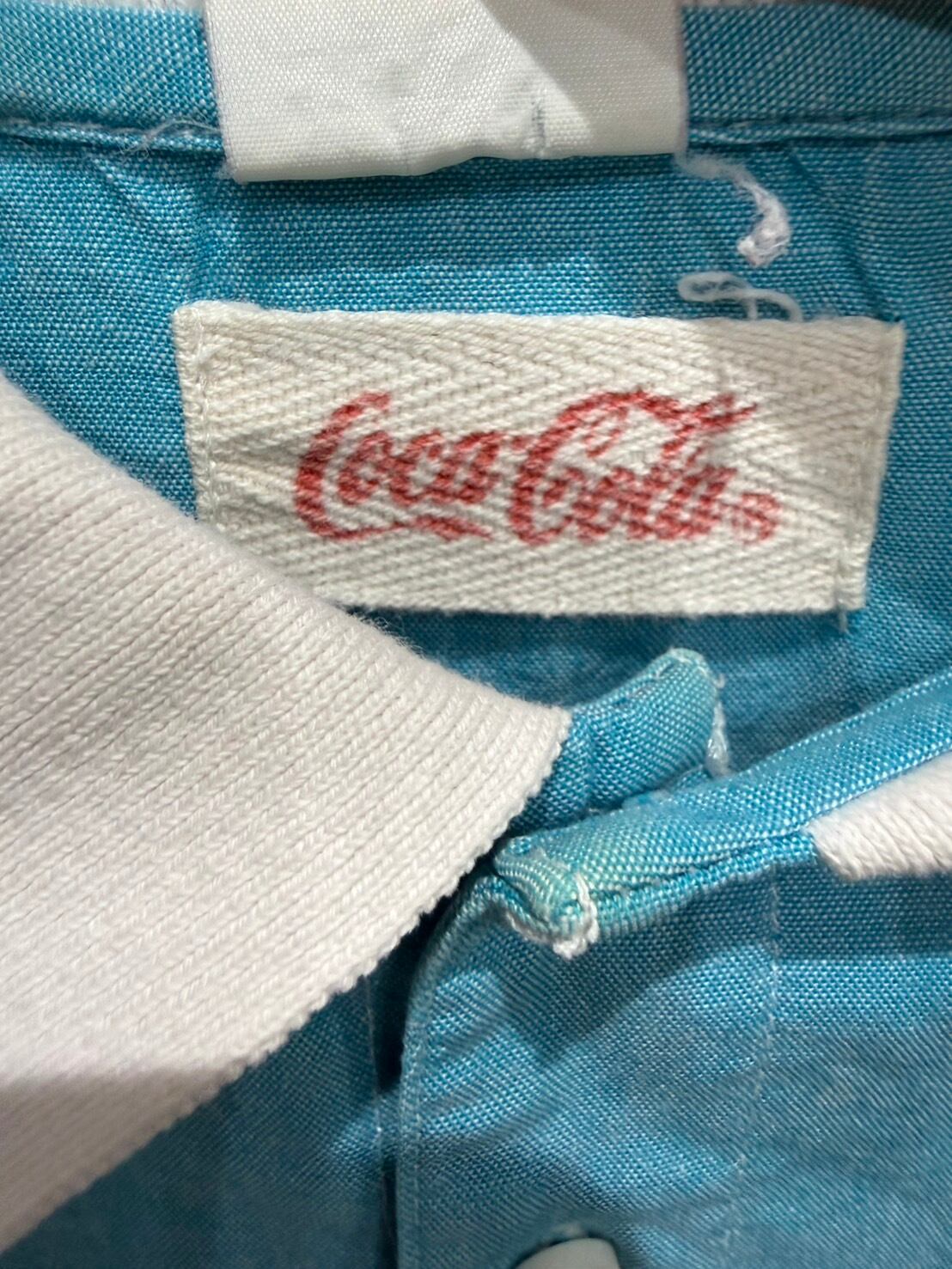 Coca Cola ラガーシャツ ケミカルブルー L 長袖ポロシャツ 古着