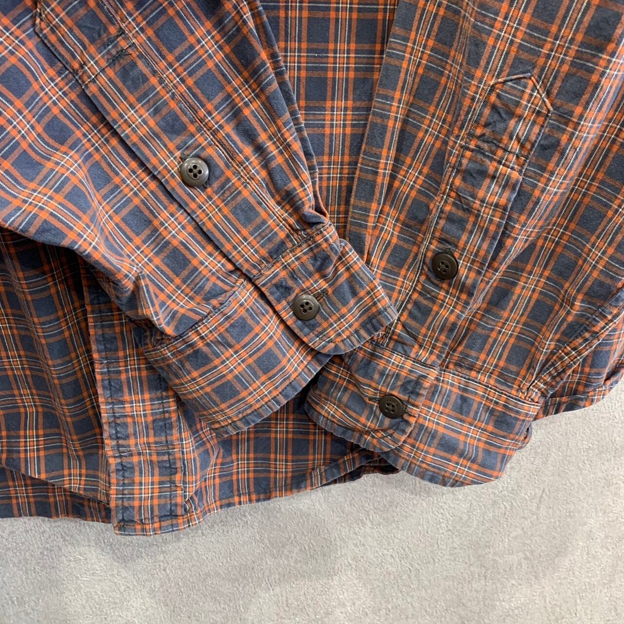 アメリカンイーグル AMERICAN EAGLE OUTFITTERS 長袖シャツ ワンポイント カジュアル チェックシャツ サイズ L ネイビー オレンジ