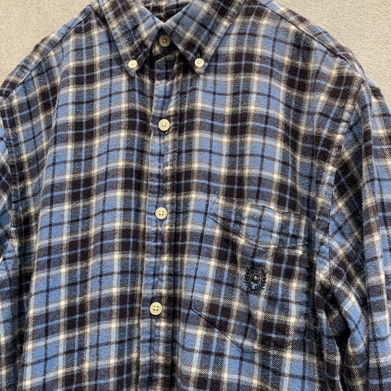 CHAPS チャップス 刺繍 ワンポイント 青チェック 長袖シャツ サイズ M ブルー