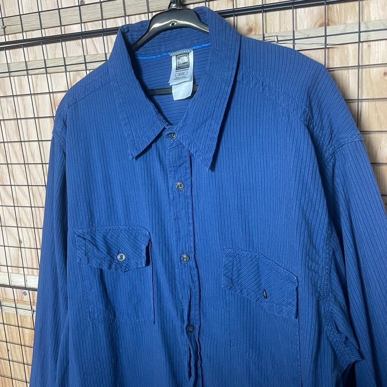 THE NORTH FACE L/S SHIRT 長袖シャツ ストライプ ノースフェイス サイズ XL ネイビー