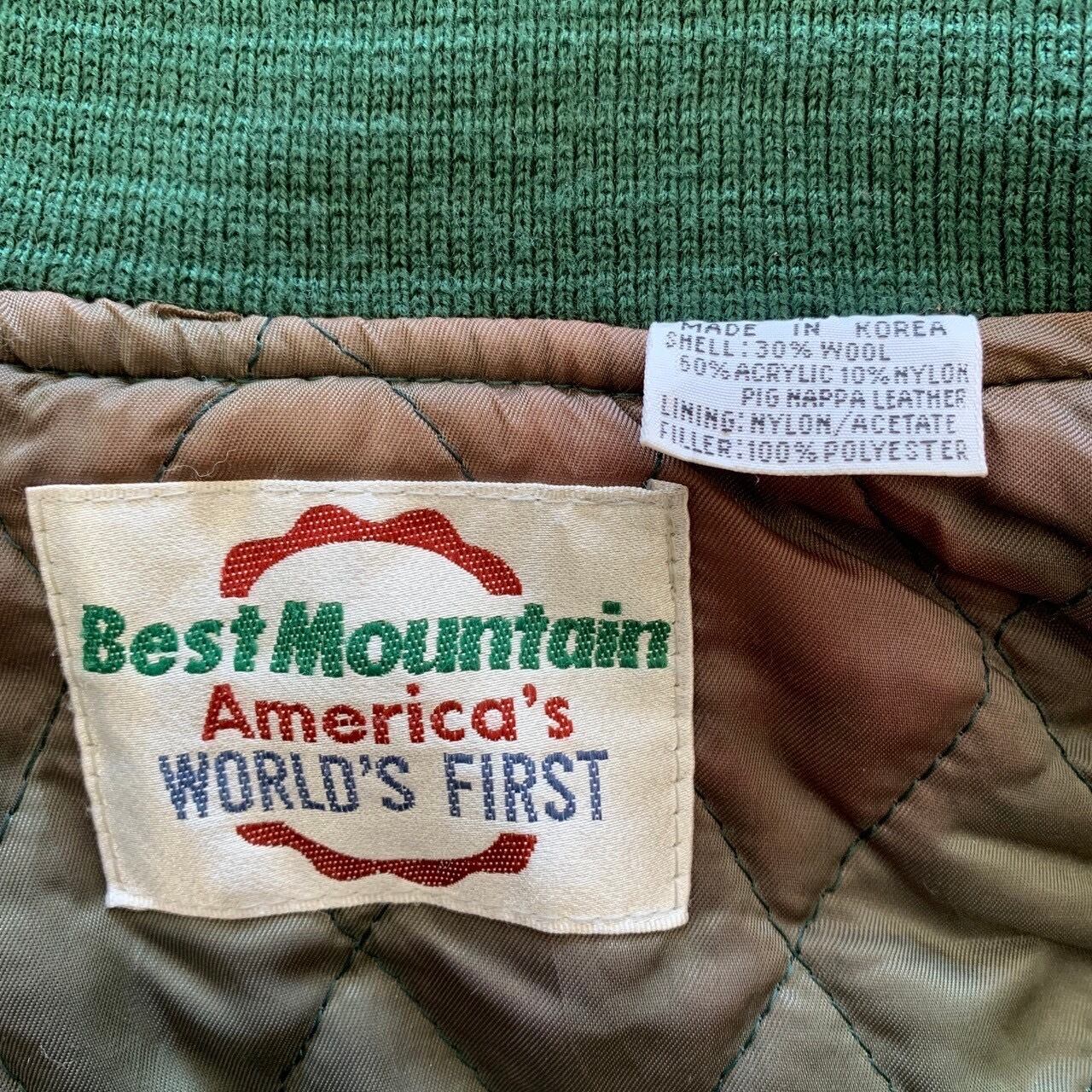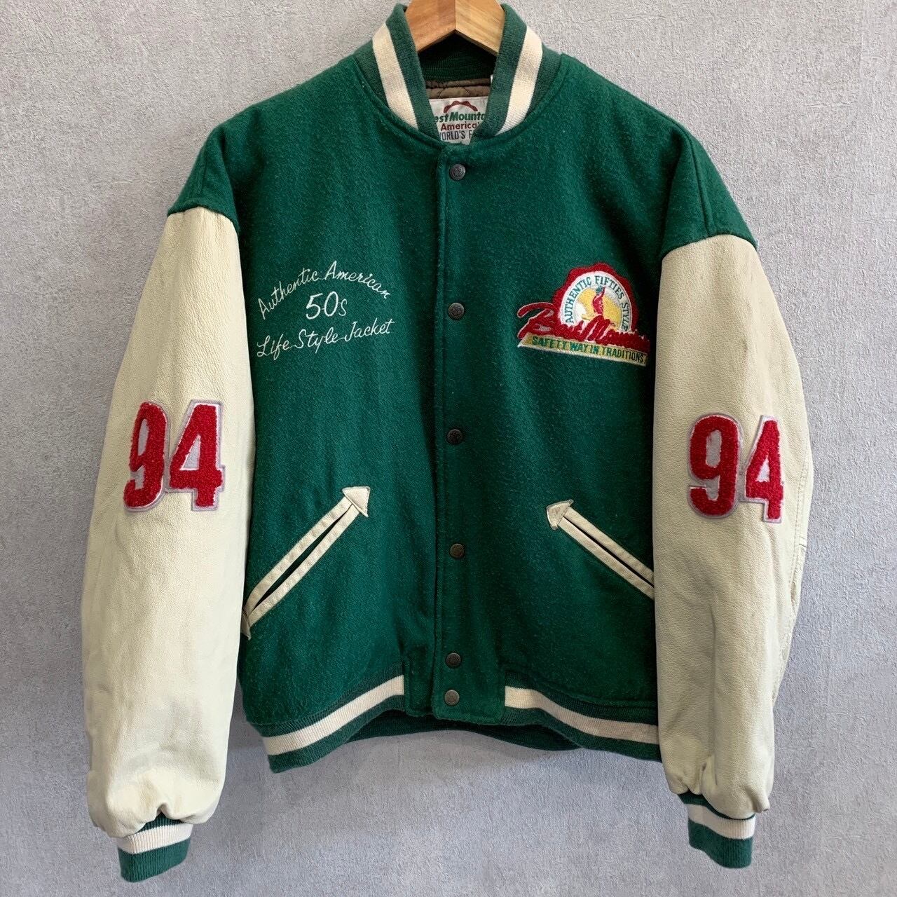 Best Mountain ベストマウンテン スタジャン グリーン M 刺繍ロゴ デザインポケット ライフスタイルジャケット 50年代スタジャンモチーフ 古着 90年代 90s