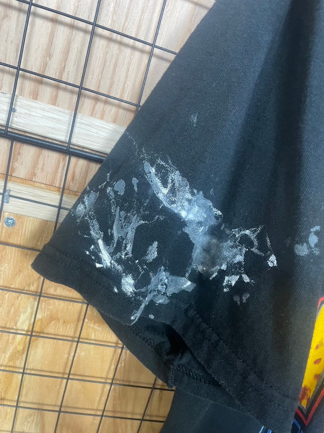 アクセントのようになっていますが袖口と裾にペンキのような塗料跡あり。