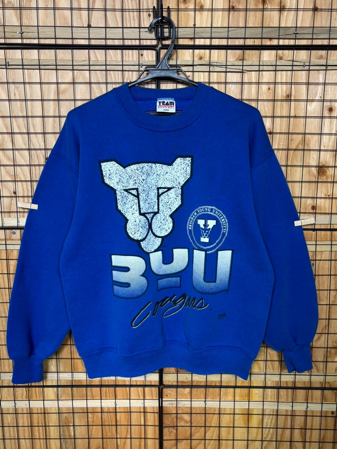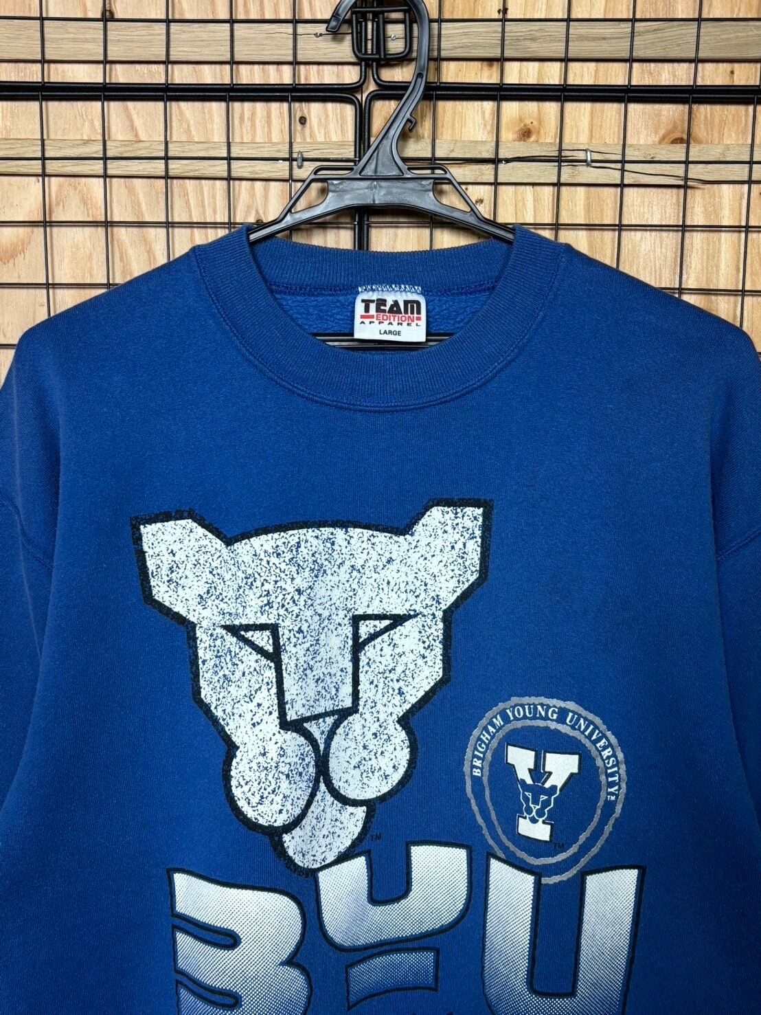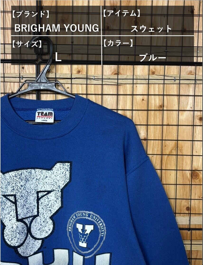 BRIGHAM YOUNG ブリガムヤング スウェット ブルー L BYU ブリガムヤング大学 フットボール チーム クーガー ヴィンテージ 古着 90年代 90s
