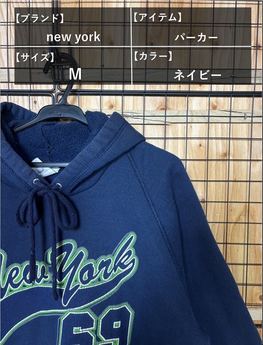 new york ニューヨーク デザイン パーカー ネイビー M フロントデザイン ヴィンテージ プリント 古着 90年代 90s
