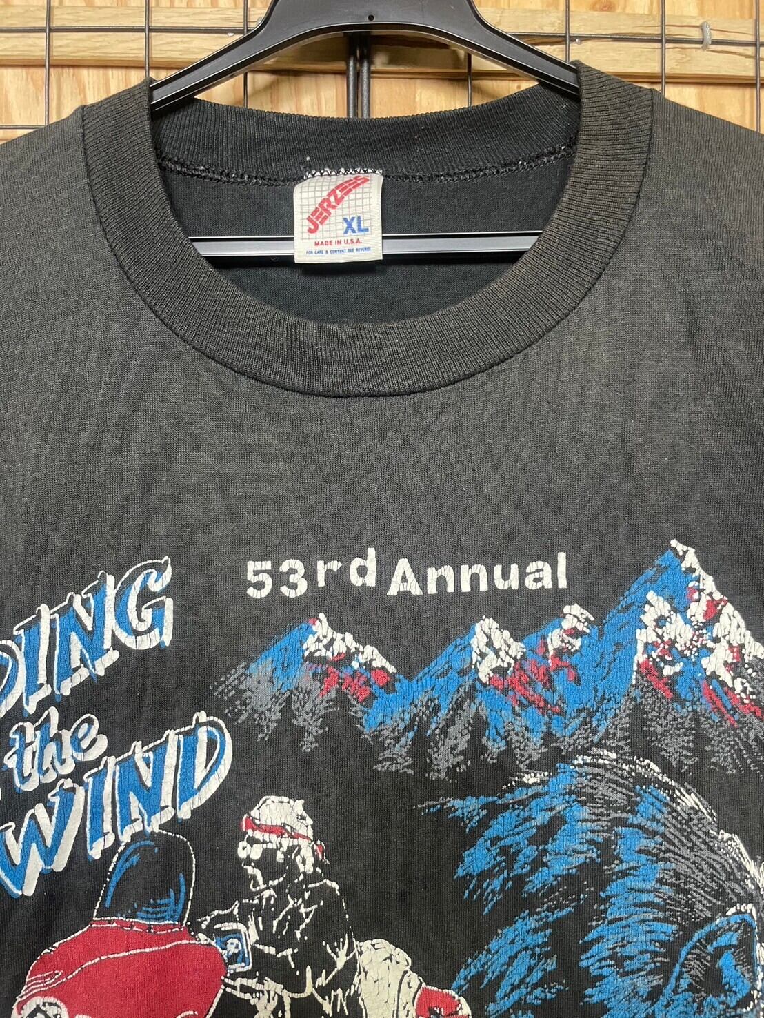 JERZEES ジャージーズ バイクプリントTee ブラック XL バイカー」 バイクショップ ヴィンテージ シングルステッチ まわしタグ ポリ混 コットン50%:ポリエステル50% Tシャツ S/S ハーレー 古着 90年代 90s S/S