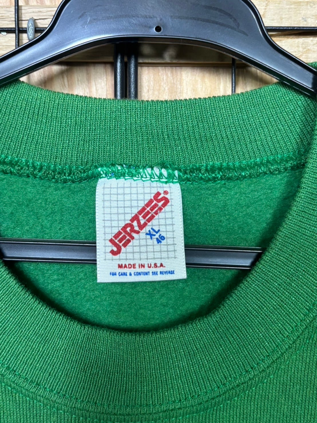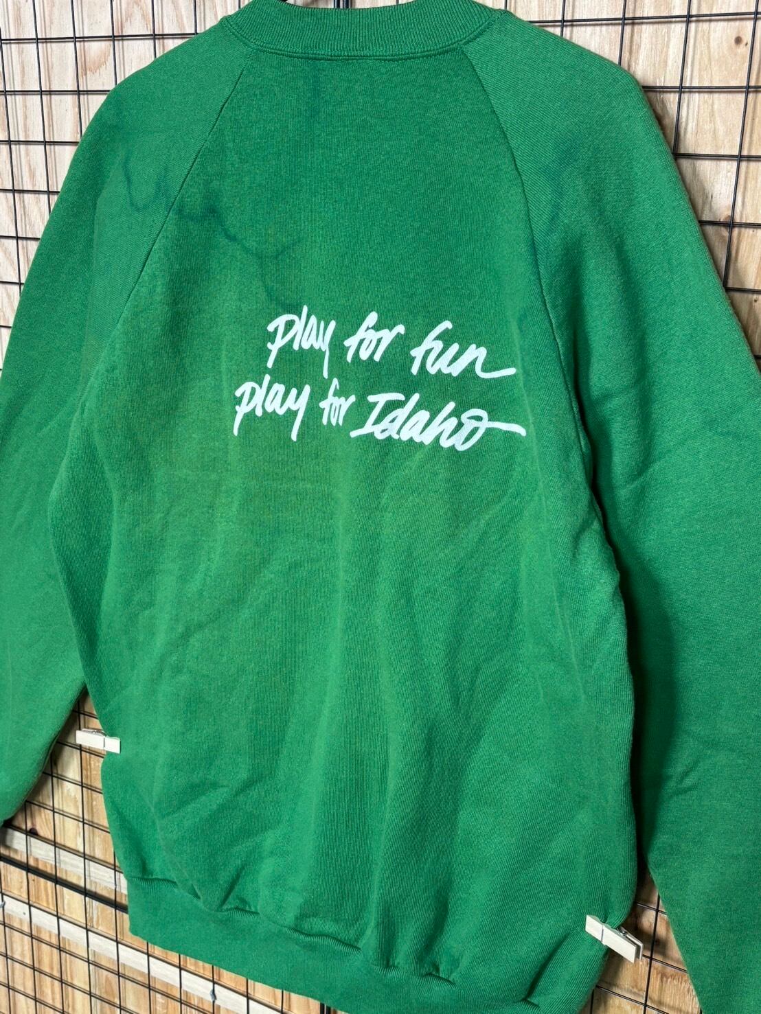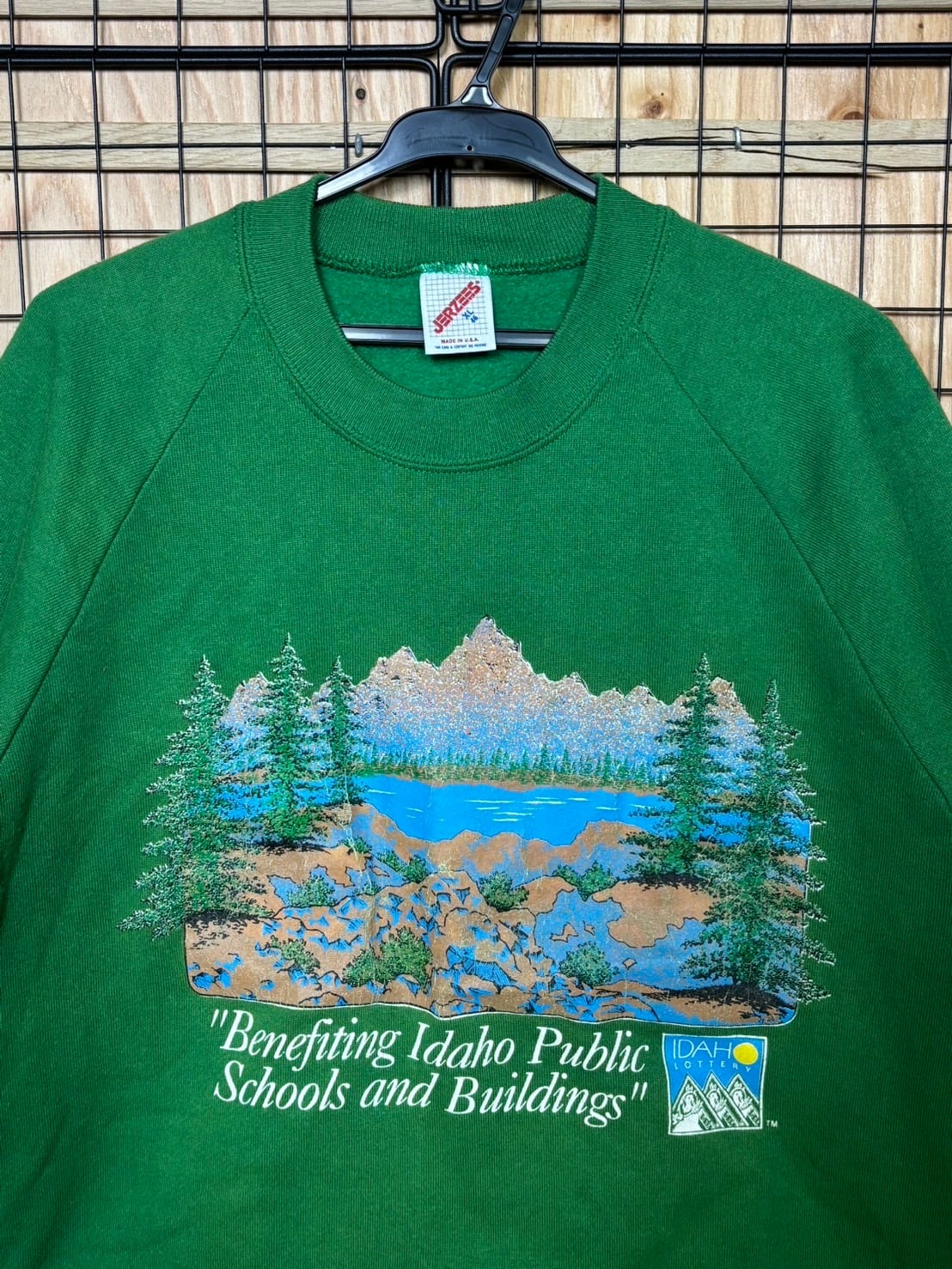 JERZEES ジャージーズ スウェット グリーン XL フロントデザイン 企業系 プリント IDAHO バックプリント ヴィンテージ シティ アウトドア 古着 90年代 80s〜90s
