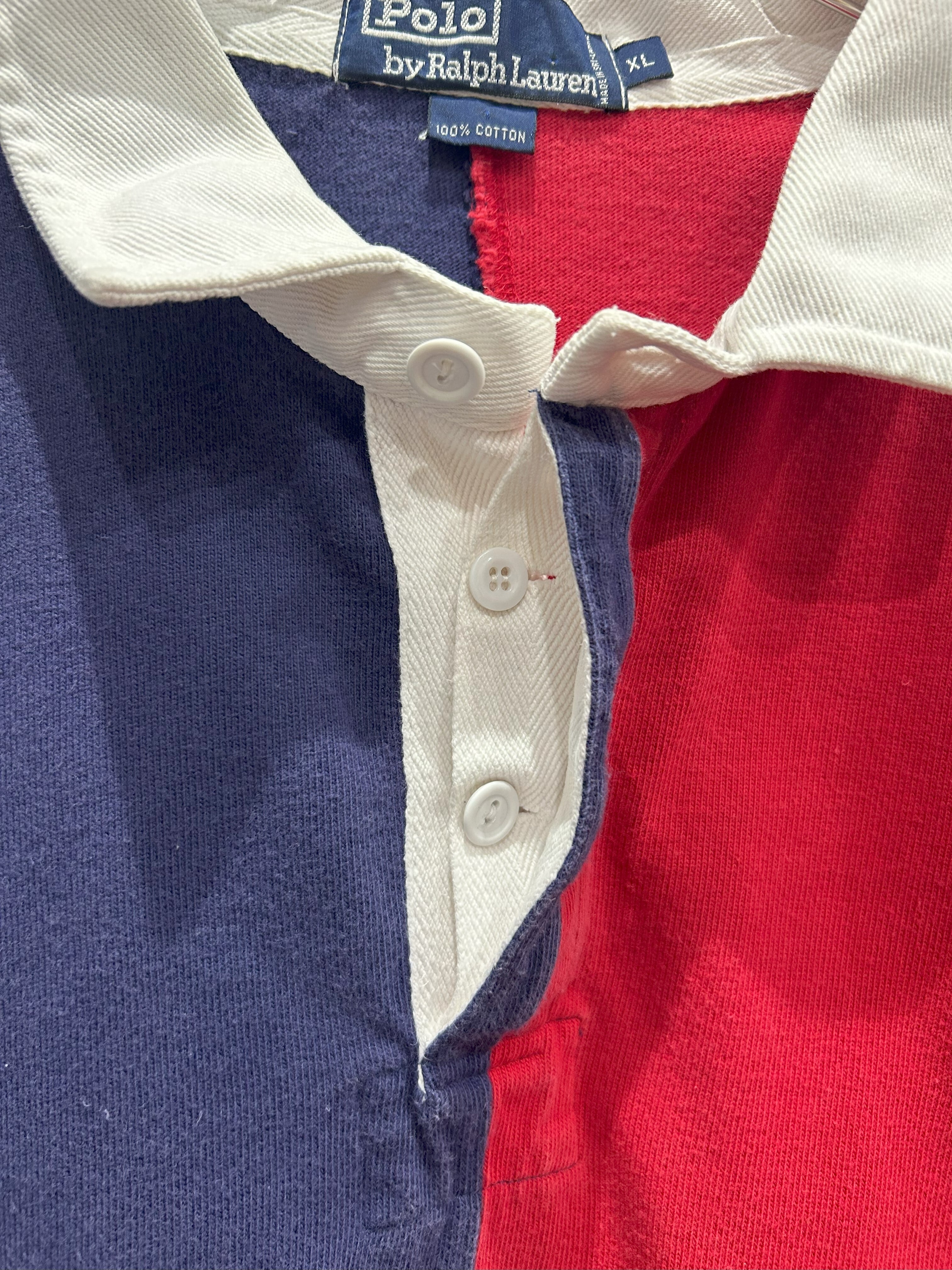 Polo RalphLauren ポロラルフローレン ラガーシャツ ネイビー/レッド XL 刺繍ロゴ 長袖シャツ クラシックフィット ハーフカラー 古着 90年代 90s