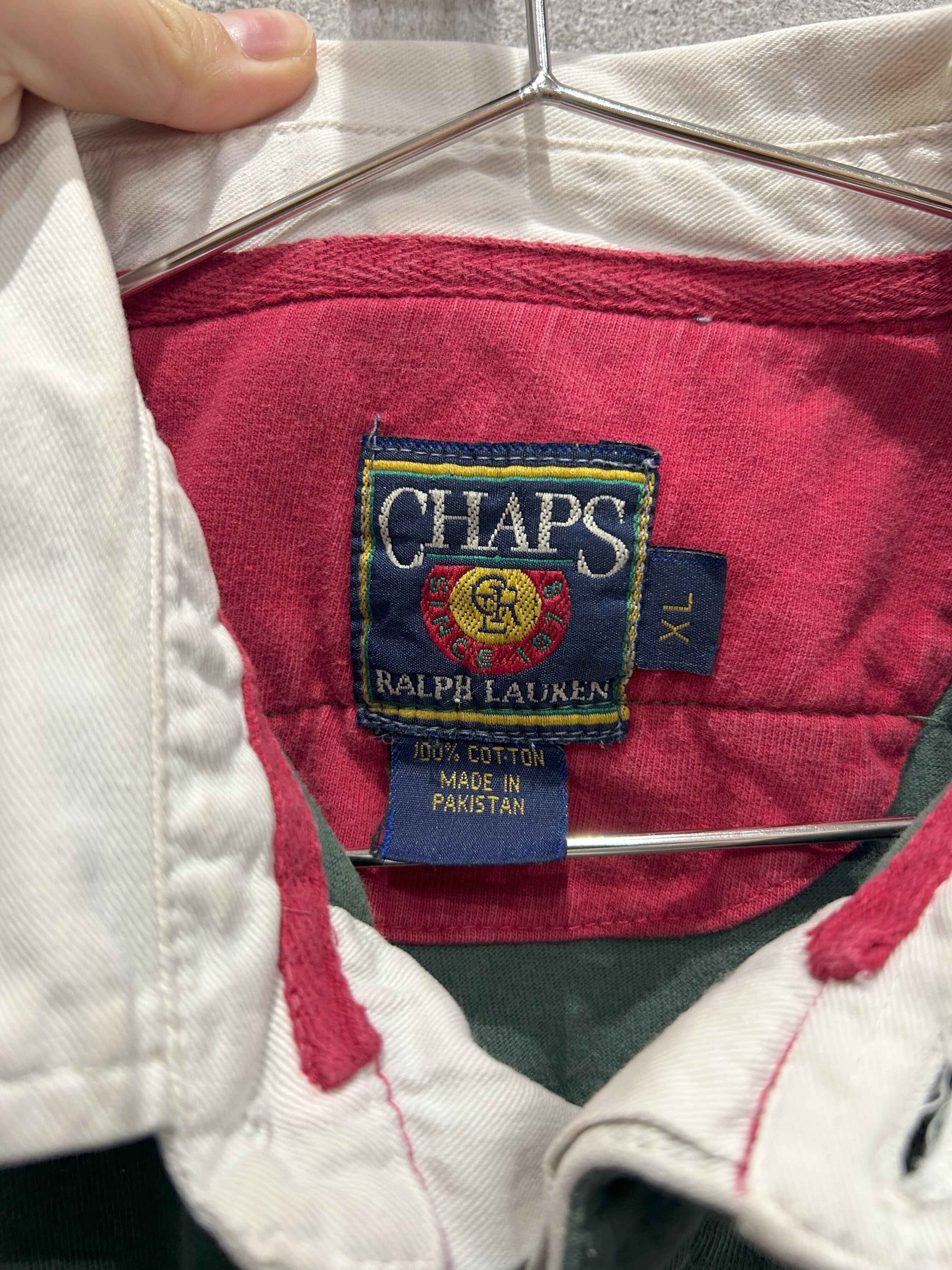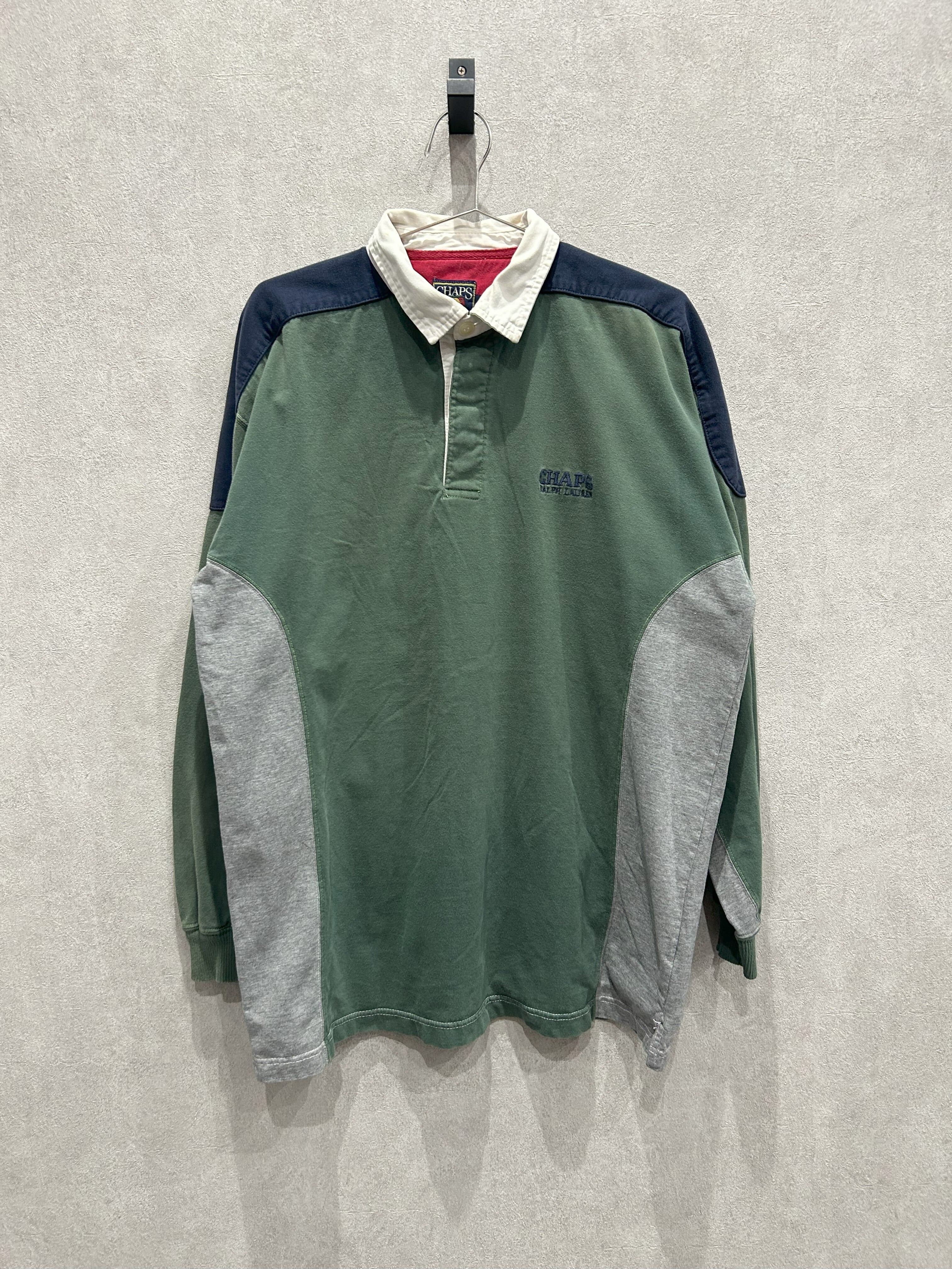 CHAPS チャプス ラガーシャツ グリーン XL 刺繍ロゴ 長袖シャツ マルチカラー 古着 90年代 90s