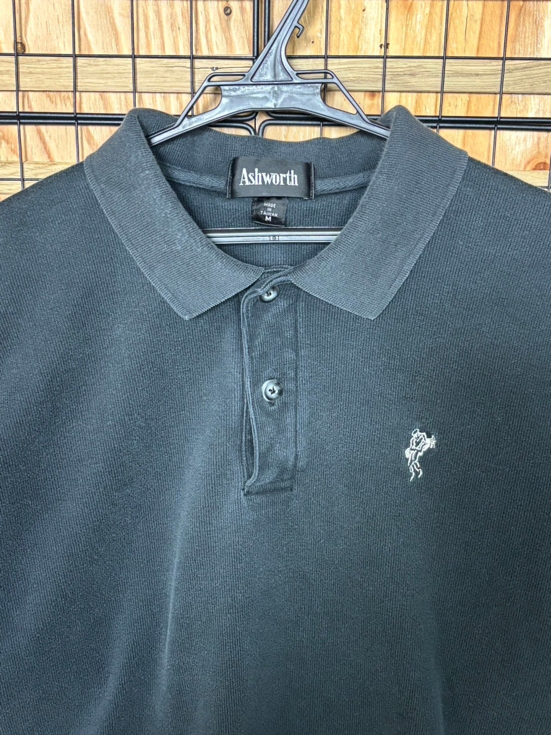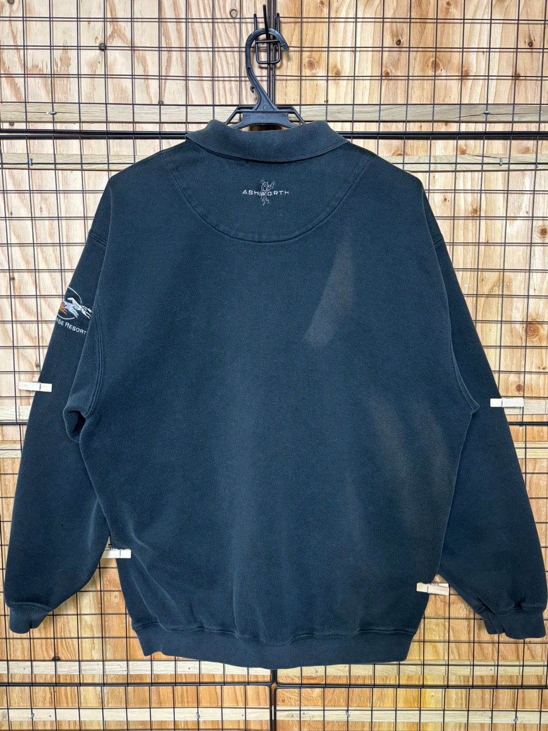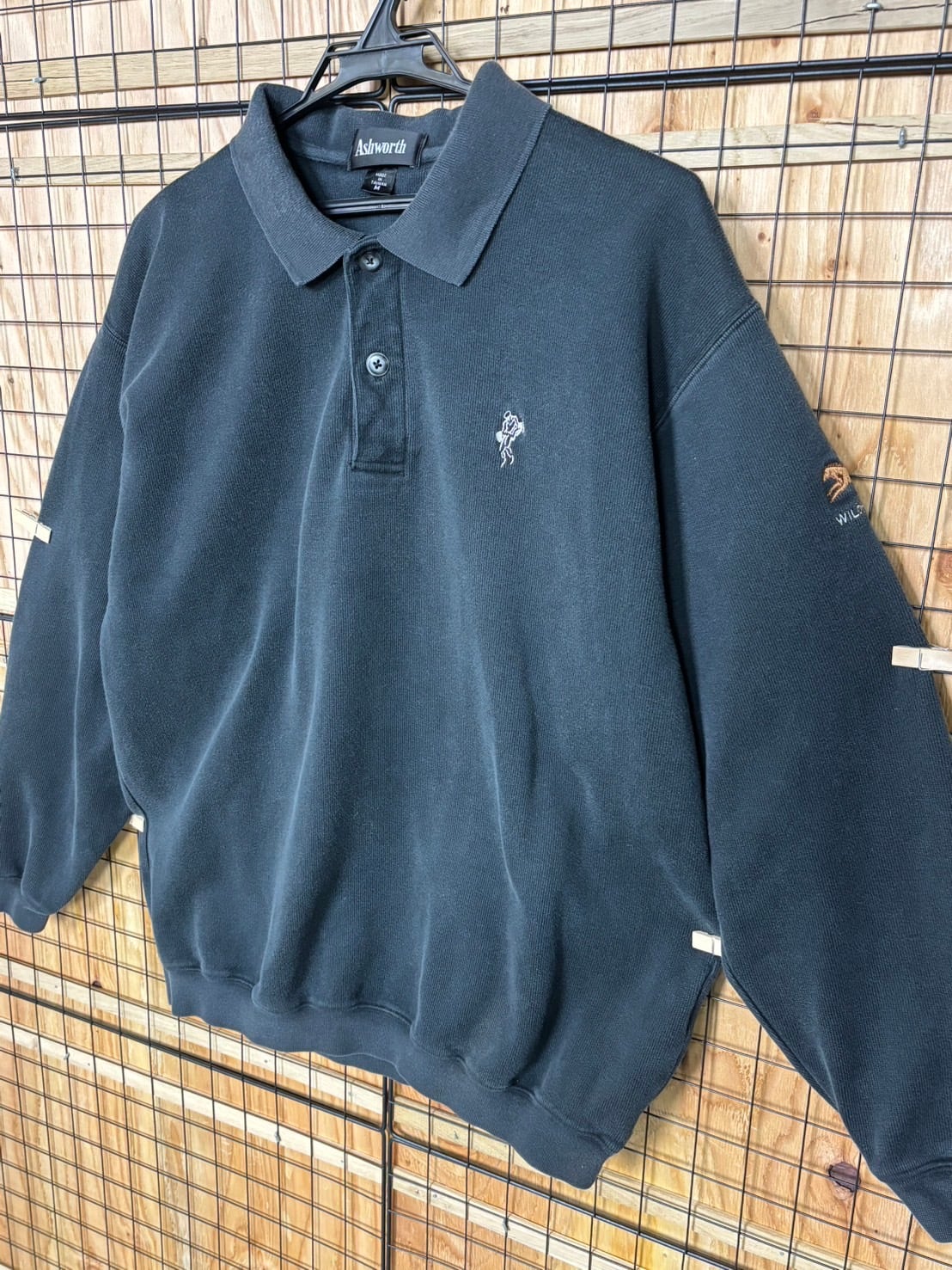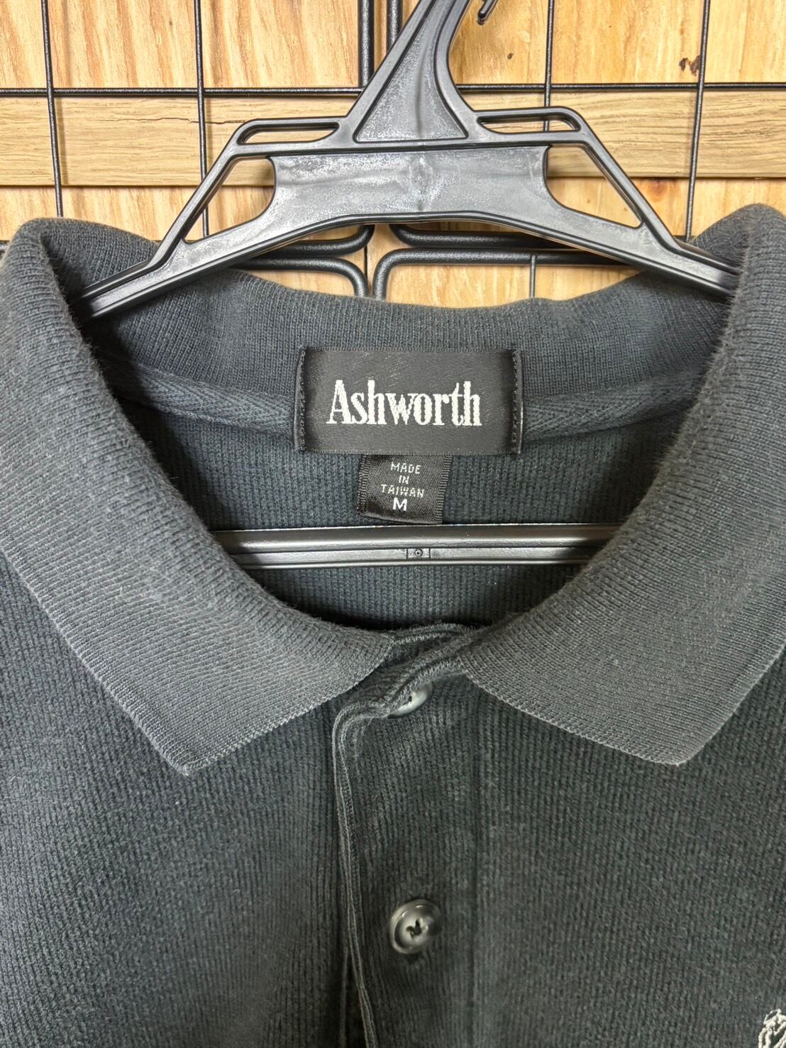 Ashworth アシュワース スウェット ブラック M ハーフボタン MADE IN TAIWAN ワンポイント ヴィンテージ スポーツ 刺しゅう ゴルフ 古着 90年代 90s